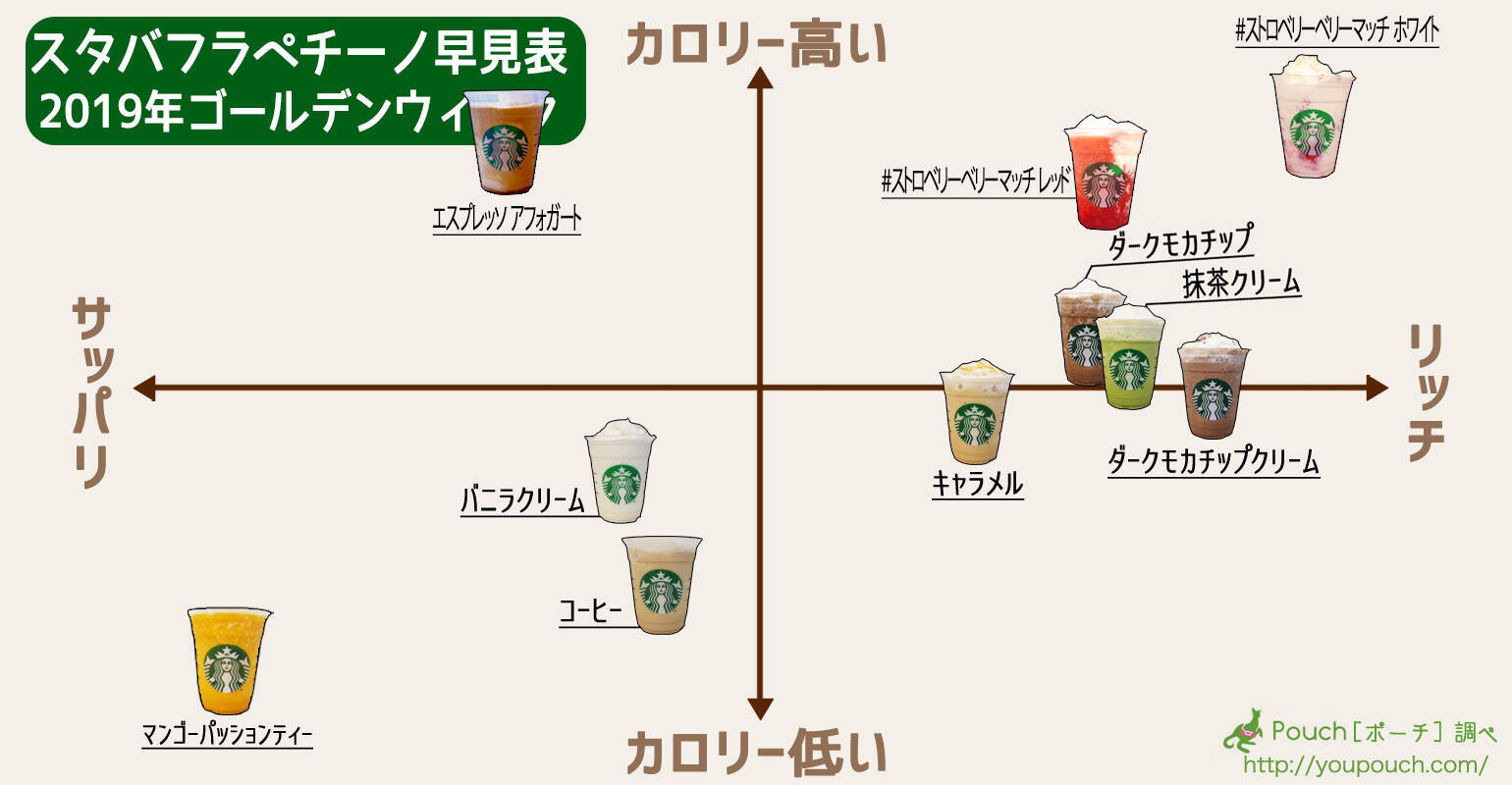 19年春新作のスタバフラペチーノも追加 カロリーをまとめた スタバフラペチーノ早見表 が便利だよ 19年4月27日 エキサイトニュース